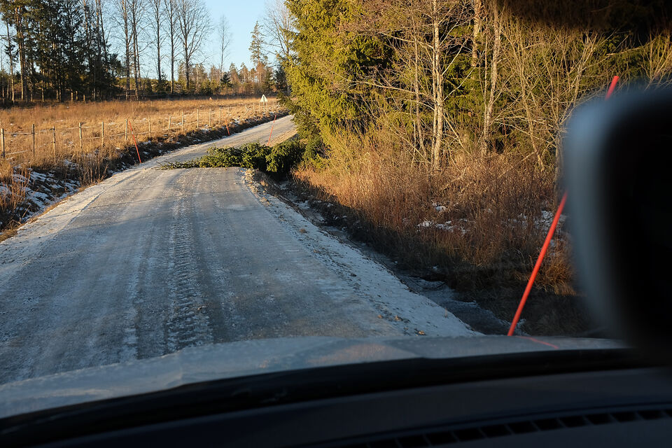 Trodde det skulle bli mera slalom när jag hämtade Roffe från hundpensionatet i morse! (Roffe firade nyår på ett hundpensionat) Men det va bara två små julgranstoppar som tittade fram litet över vägen ... läs mer..