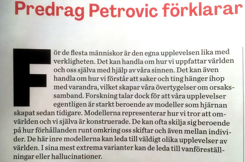 Ur en artikel i F&F nummer 9 2022 av Predrag Petrovic. (Docent och specialistöverläkare i Psykiatri på KI)