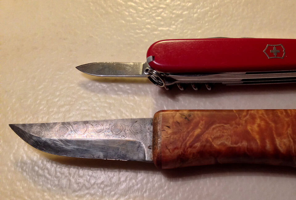 Påminner om skillnaden mellan ett fast objektiv och ett zoomobjektiv! ;) Och varför mönster på bladet? Jo det e en teknik som kallas damaskering eller mönstervällning där man sammanfogar flera lager ... läs mer..