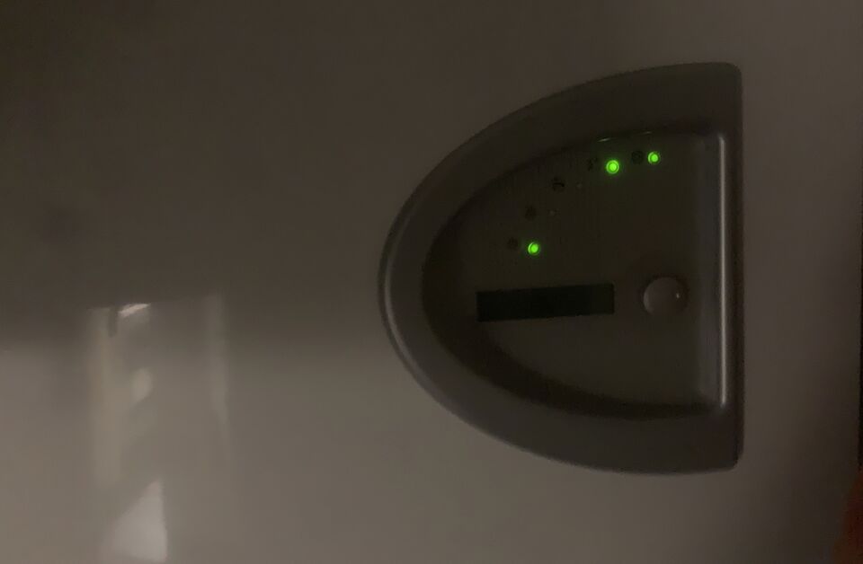 Fast det börjar bli litet tjatigt nu med den här extra lilla gröna lampan på frånluftsvärmepumpen! Den indikerar att elpatronen är på! Det är kylan som är orsaken!
