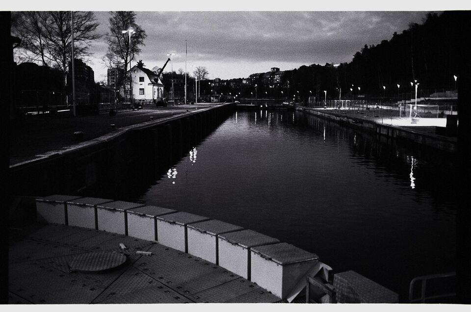 Analog kvällsbild från Södertälje kanal! Taget runt 2021! Nikon FE med Nikkor 2/35 och HP5+ Hybridfoto!